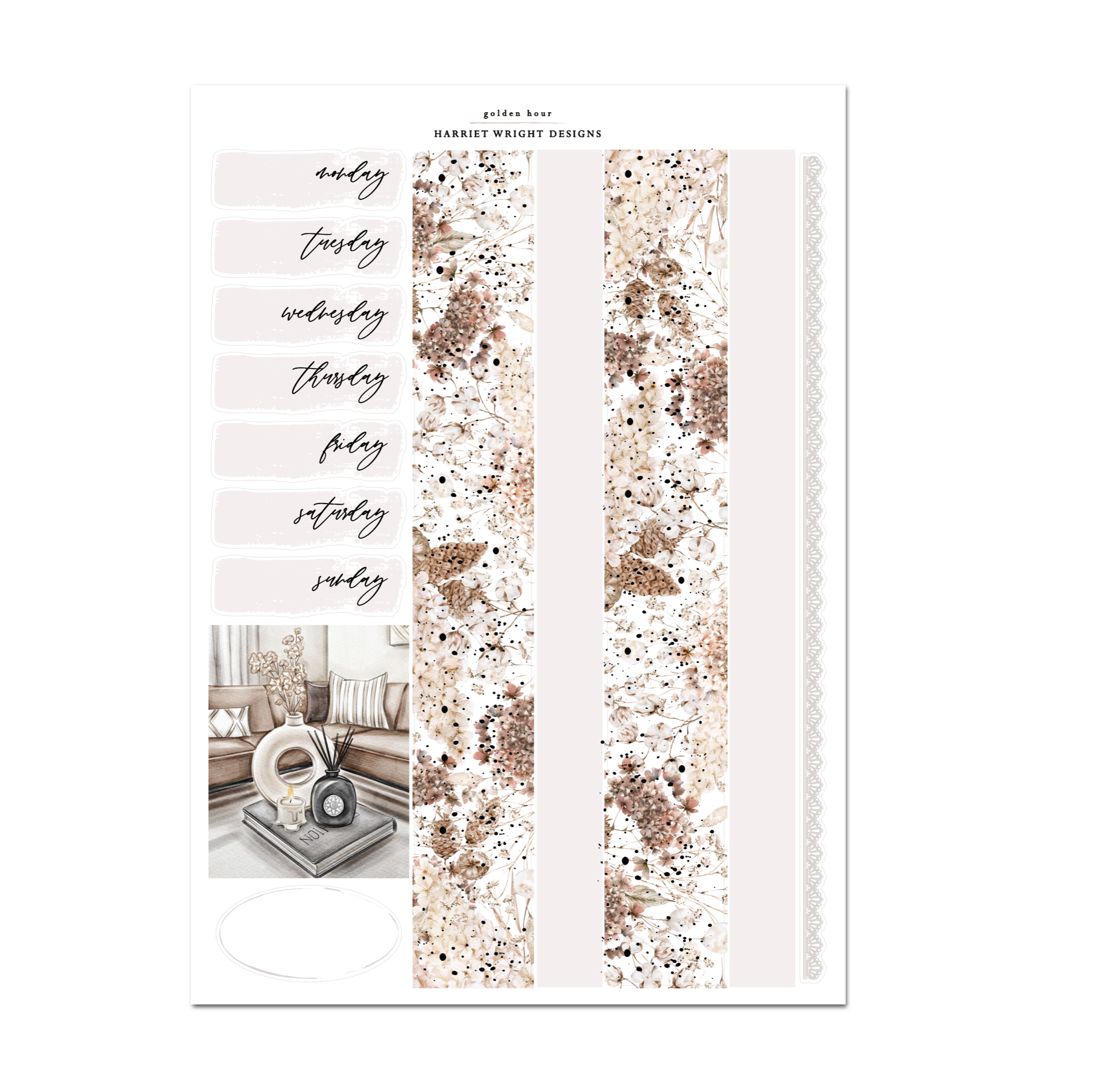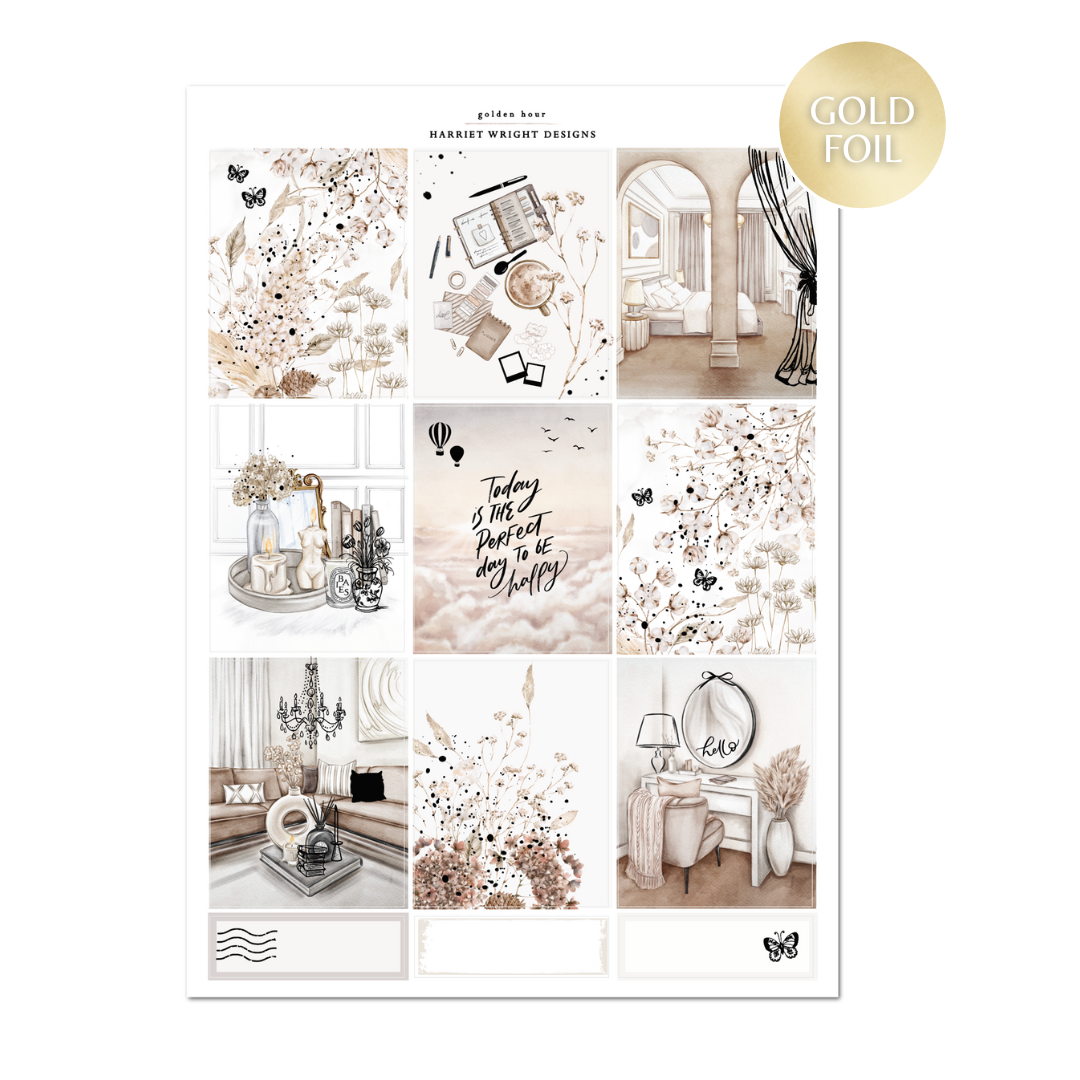 This weekly sticker kit contains 4 beautiful foiled sheets designed to fit vertical planners with 1.5" columns